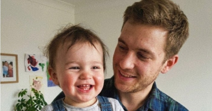 Luke stod där med sin barnvakt.