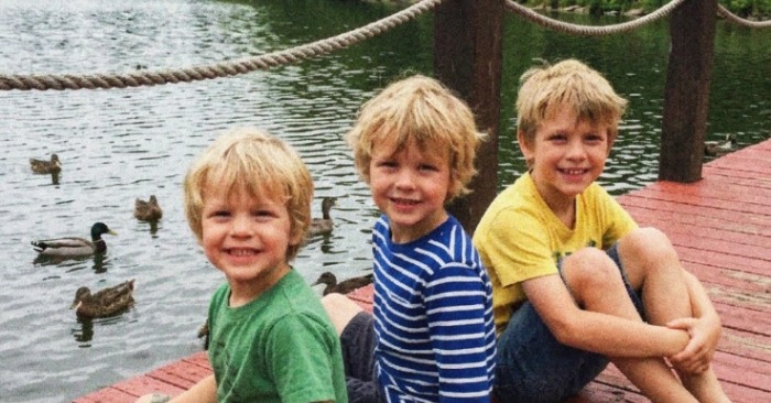 Tre småpojkar klev in i huset med ryggsäckarna på axlarna.