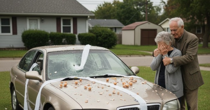 Morgonen före Halloween öppnade jag dörren och fann min bil täckt av äggulor och toalettpapper.