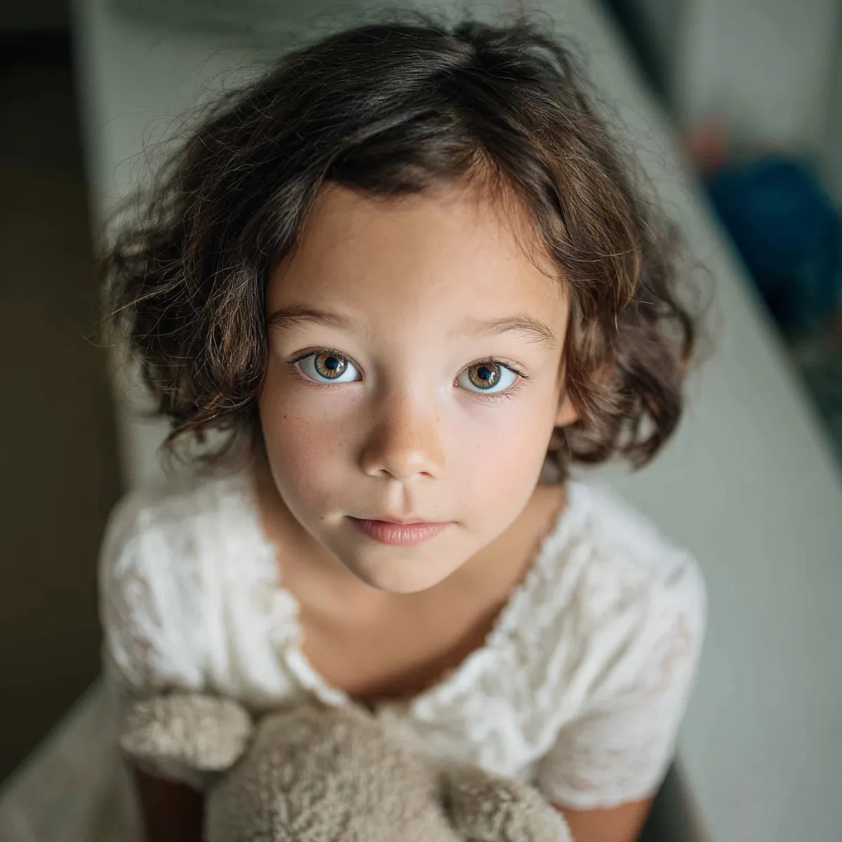 Lily satt ensam på en bänk och höll i en nallebjörn.