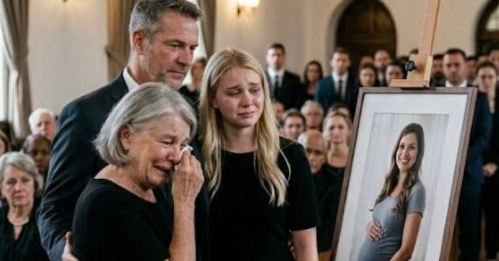 När jag steg in i Sankt Marks begravningssal knöt jag händerna så hårt att vigselringen skar smärtsamt in i huden. Emily Carter borde ha inrett ett barnrum nu, inte legat i en blank mahognykista — hennes åtta månader stora mage syntes fortfarande tydligt under satintyget. Jag upprepade för mig själv om och om igen att allt bara var en mardröm… att jag skulle vakna ur det där telefonsamtalet: ”Mrs. Carter, det har skett en olycka.”